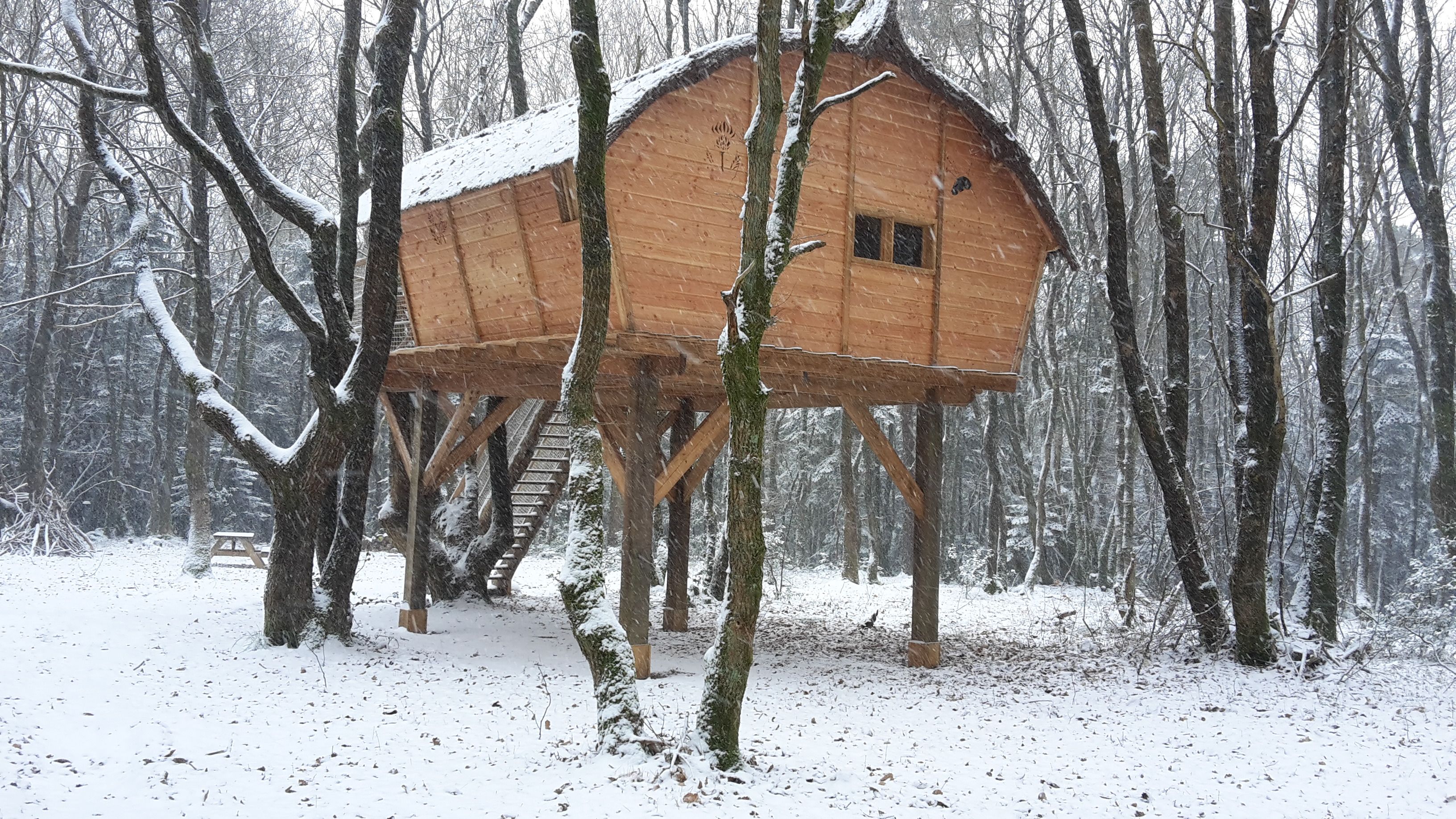 Pour votre confort et votre détente, nous vous proposons trois de nos cabanes perchées et nos deux yourtes avec leur bain nordique privatif sur la terrasse.